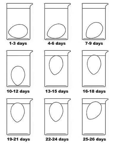 अंडे की ताजगी जाँचने (Freshness test for eggs) के लिए हम एक छोटा सा प्रयोग करेंगे। एक काँच की ग्लास में एक अंडा डालें। अब ग्लास को पानी से भर दें। पानी डालने पर यदि अंडा ग्लास के तल पर ही रहता है अर्थात यदि अंडा पानी के अंदर ही डूबा रहता है तो अंडा ताजा (fresh egg) है। परंतु यदि अंडा पानी में तैरने लगता है या पानी में ऊपर की ओर आने की तरह दिखता है तो समझना चाहिए की अंडा पुराना है। दिये गए चित्र देख कर आप जान सकते हैं की आपके घर में जो अंडा है वह कितना पुराना है।